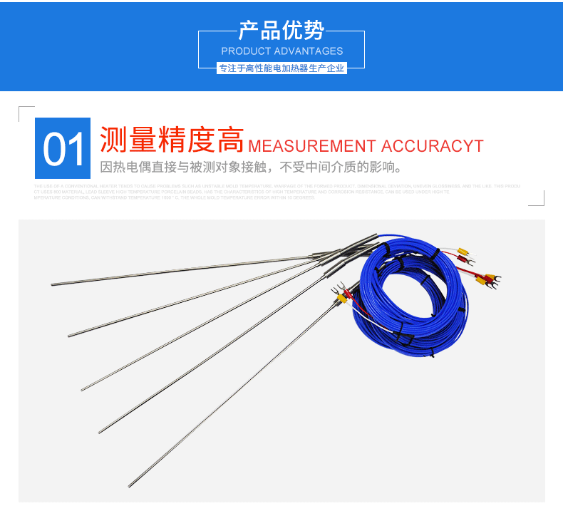 ① 測量精度高 因熱電偶直接與被測對象接觸,不受中間介質(zhì)的影響。